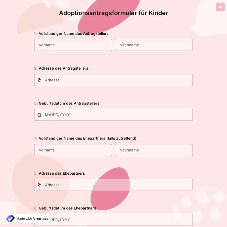 Adoptionsantragsformular für Kinder