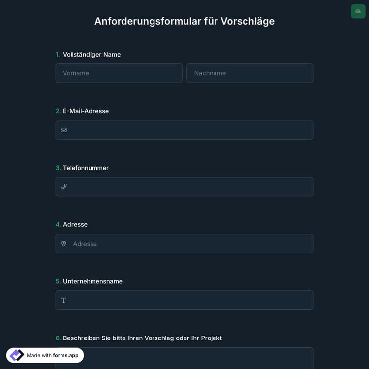 Anforderungsformular für Vorschläge