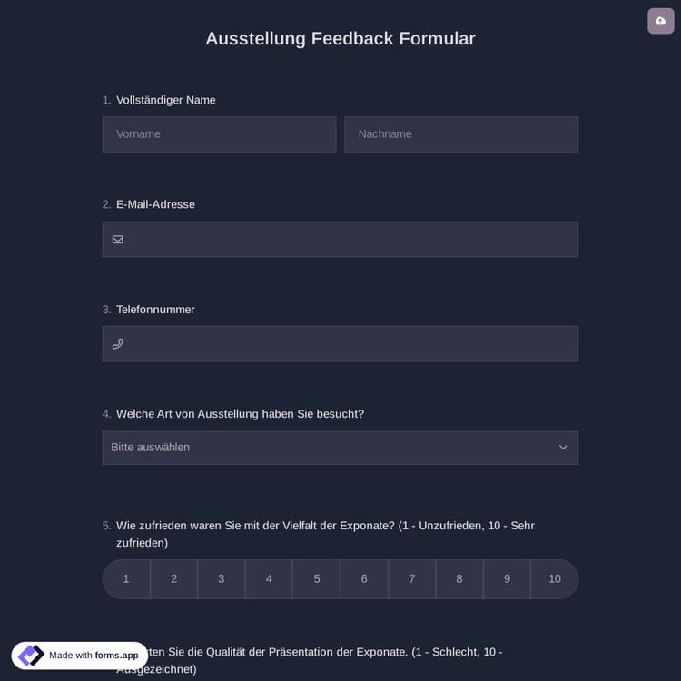 Ausstellung Feedback Formular