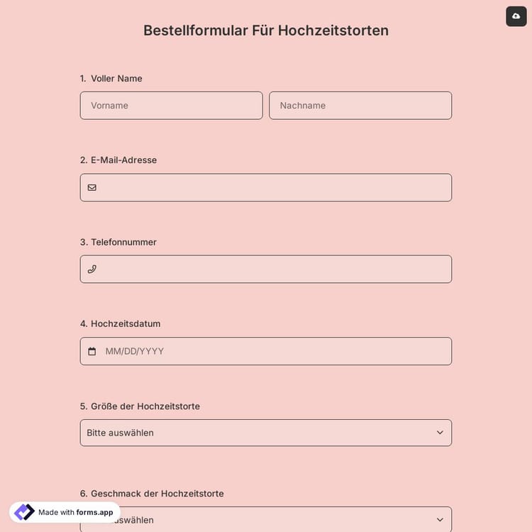 Bestellformular Für Hochzeitstorten