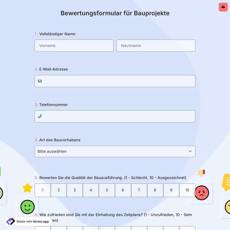 Bewertungsformular für Bauprojekte