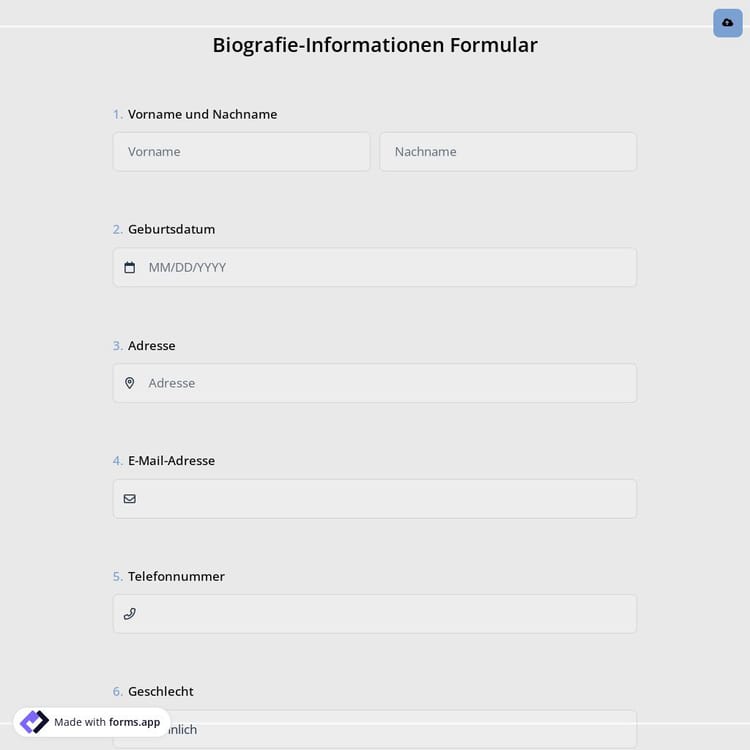 Schau dir dieses biografie-informationen formular an und klicke auf „Vorlage verwenden“, nachdem du sichergestellt hast, dass es das ist, was du suchst.