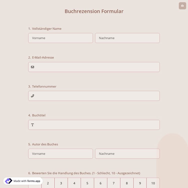 Die Welt der Buchbewertungen hat sich aufgrund des starken Wachstums der Buch-Community auf Plattformen wie Instagram, Youtube und sogar TikTok weit über traditionelle Bewertungen hinaus entwickelt. Derzeit gibt es viele Möglichkeiten, eine Buchbewertung zu organisieren, und Sie können Ihr Formular einfach teilen. Um auf dem neuesten Stand zu bleiben, wird die Verwendung dieser kostenlosen Buchbewertungsvorlage eine hervorragende Grundlage für Ihr eigenes Formular sein. Klicken Sie hier, um zu beginnen, klicken Sie auf "Vorlage verwenden", passen Sie sie an Ihre Bedürfnisse an und beginnen Sie jetzt, Buchbewertungen zu sammeln!