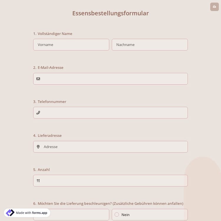 Was ist ein Bestellformular für Essen?
