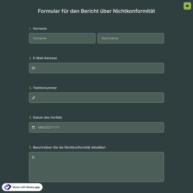 So erstellen Sie ein Online-Formular für die Nichtkonformitätsmeldung auf „forms.app“.