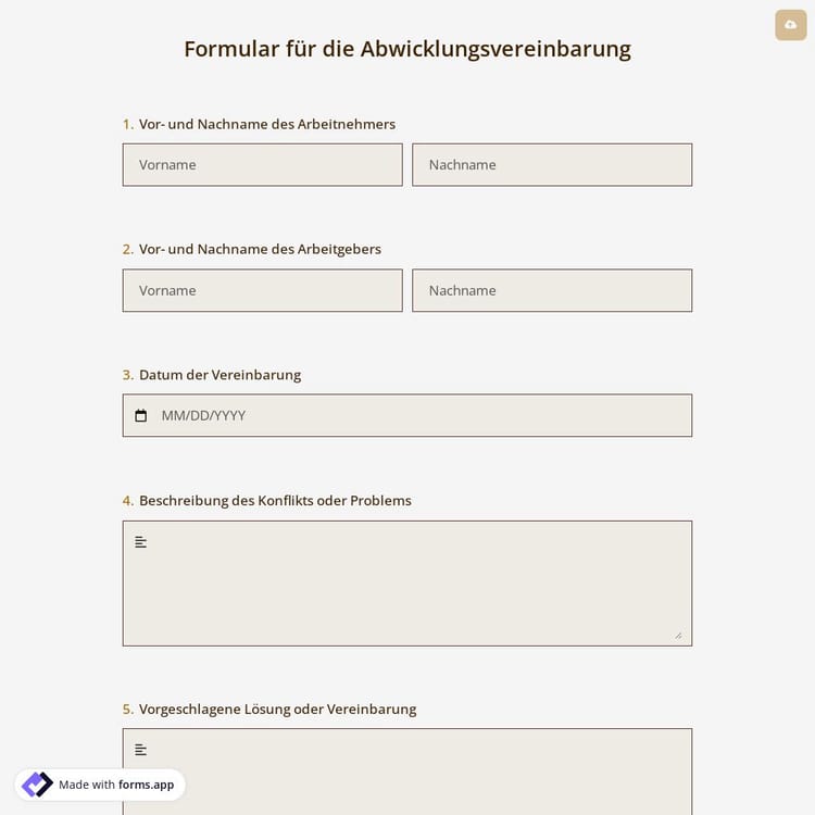 Formular für die Abwicklungsvereinbarung