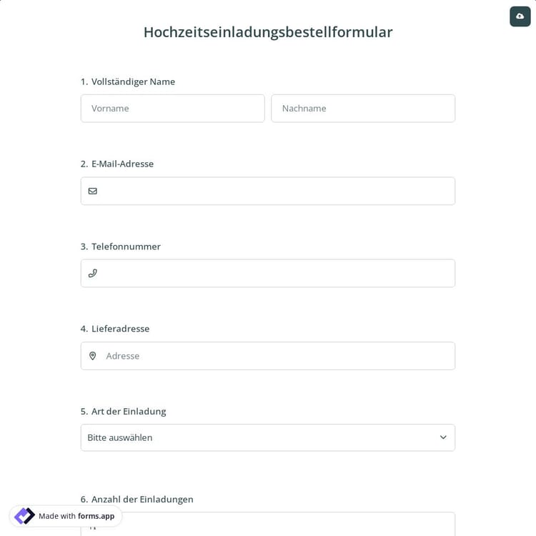 Erstellen Sie mühelos Online-Formulare, passen Sie die Felder, das Design und die Datenschutzoptionen Ihres Formulars innerhalb weniger Minuten an. Indem Sie einige der vielen Arten von Formularfeldern für alle Anforderungen mit dem Drag-and-Drop-Formularerstellungsbildschirm von forms.app hinzufügen, können Sie auch Online-Umfragen und -Prüfungen erstellen.