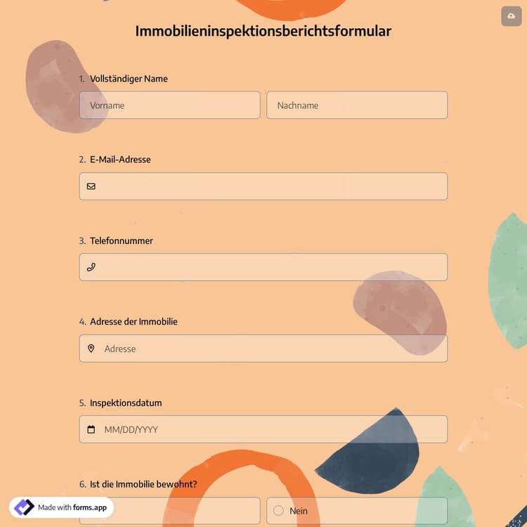 Die Inspektion von Immobilien kann eine Ihrer Aufgaben als Immobilienmakler sein, um Ihren Kunden einen transparenten und fairen Service anzubieten. Sie können unser kostenloses und benutzerfreundliches Modell für ein Online-Immobilieninspektionsformular verwenden, um diese Aufgabe zu vereinfachen. Keine Programmierkenntnisse erforderlich.
