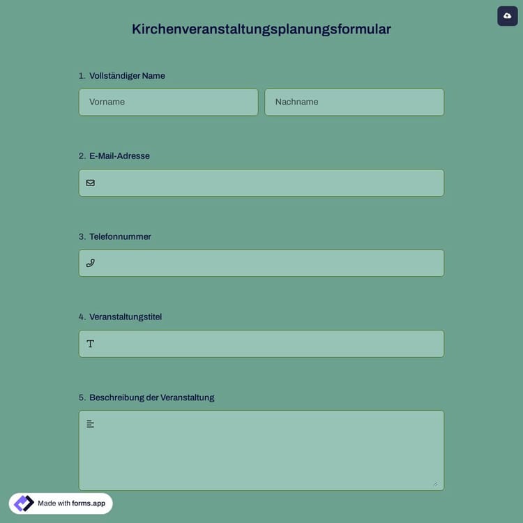Schau dir dieses kirchenveranstaltungsplanungsformular an und klicke auf „Vorlage verwenden“, nachdem du sichergestellt hast, dass es das ist, was du suchst.