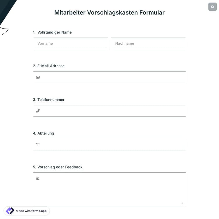 Mitarbeiter Vorschlagskasten Formular