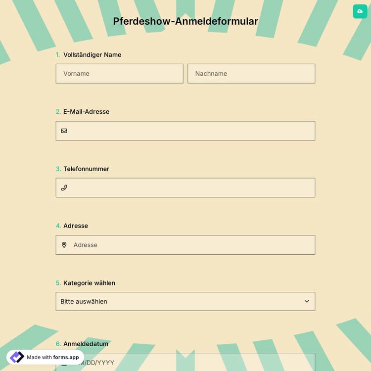 Schau dir dieses pferdeshow-anmeldeformular an und klicke auf „Vorlage verwenden“, nachdem du sichergestellt hast, dass es das ist, was du suchst.