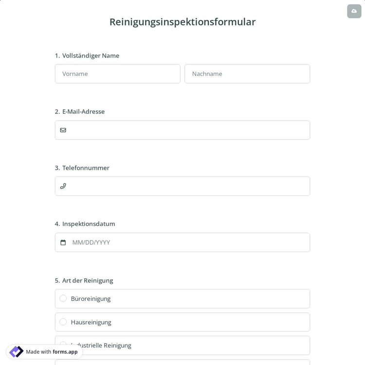 Reinigungsinspektionsformular