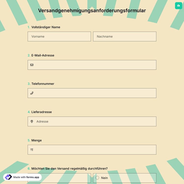 Müssen Sie Ihre Produkte oder Waren versenden? Sie können detaillierte Informationen zu Ihrem Versand über dieses Formular bereitstellen. Sie können es anpassen und mit jedem teilen, den Sie möchten. Erstellen Sie in wenigen Minuten Ihr eigenes Formular mit diesem Online-Formular ohne Codierung!