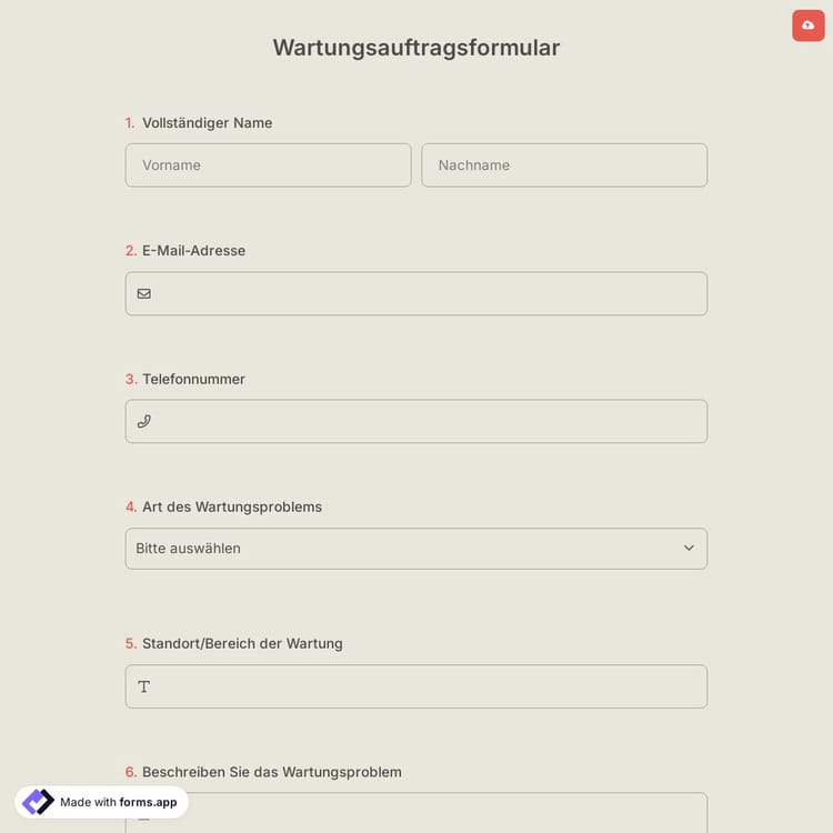 Wartungsauftragsformular