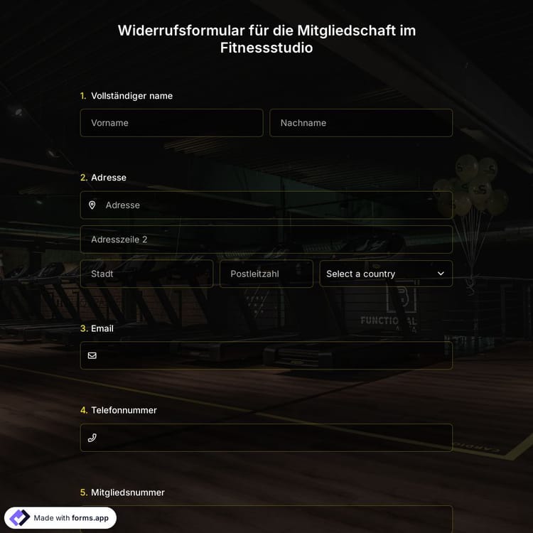 Diese widerrufsformular für die mitgliedschaft im fitnessstudio ist kostenlos und anpassbar
