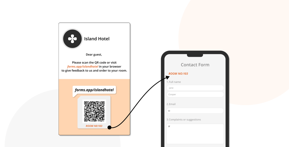 Creating multiple QR codes for a single form is a perfect way to share the same form with many guests! For example, you can eliminate the room number question and make your form faster to complete.
