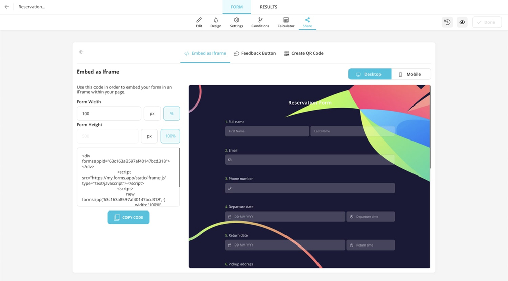- Step 7: Use a link to embed or share your form.