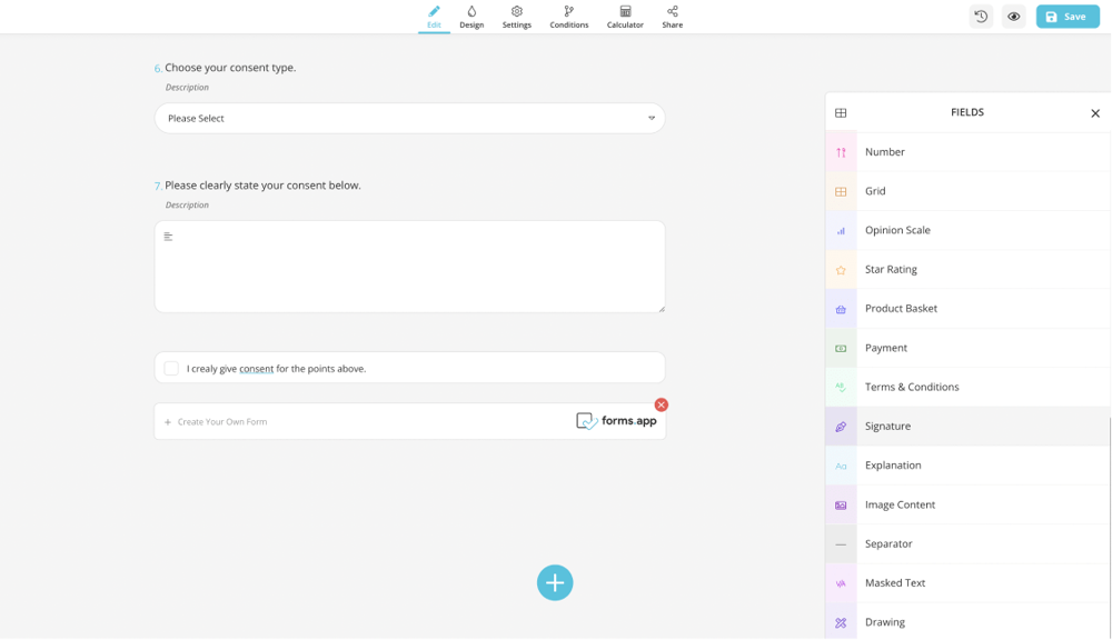 3 - In the form editor, click the "Add Field" button and choose "Signature" from the list of available fields. Your form will now include a digital signature field.
