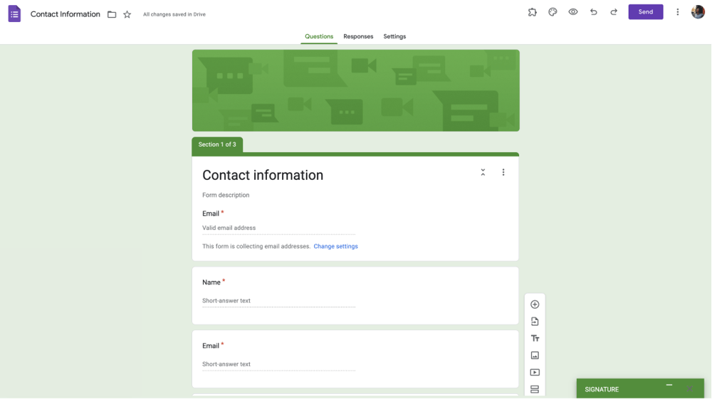 3 - Publish the form: When you are finished creating your form, click on the "Send" button to publish it. You can then share the form with others through a link or email invitation or embed it on your website.