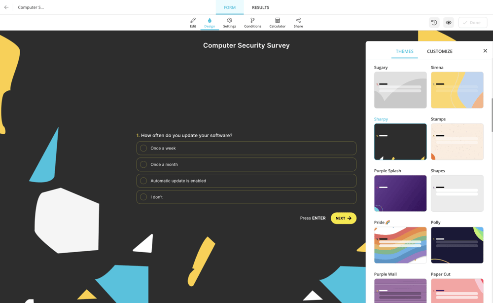 3 - Customize the design: Change the themes and colors so that they can represent your brand color, and you can make it unique and eye-pleasing for responders.