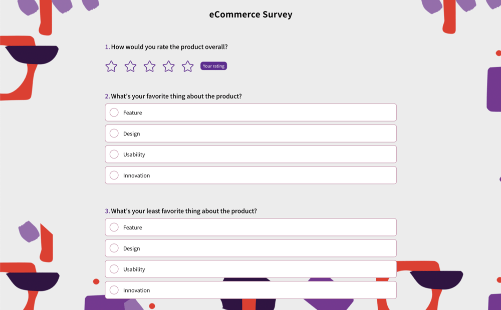 Here are some example questions for your eCommerce customer survey questions: