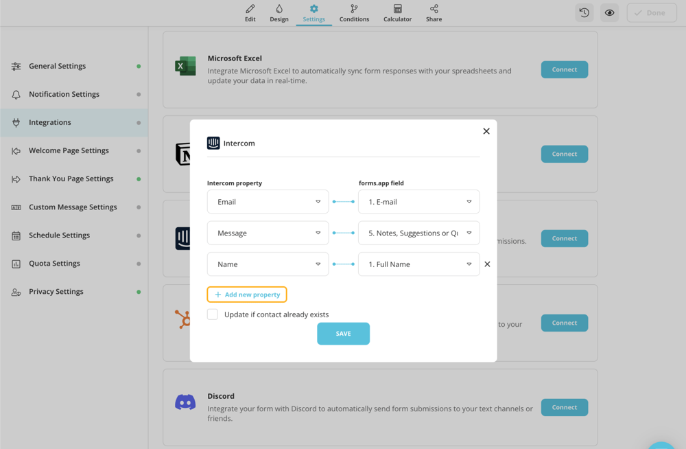 4 - Simply click on “Add New Property” to pair new properties if you collect additional information in your form.
