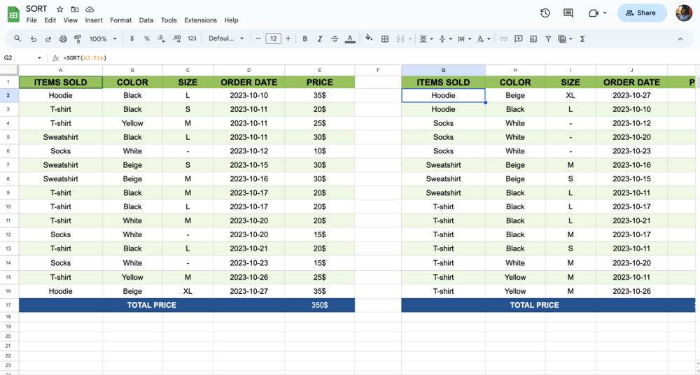 💡 If you need an alphabetical order to manage your data easier, you can use the SORT function.