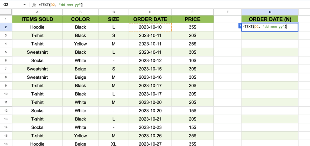 The TEXT formula transforms numbers into texts, including currencies, dates, decimals, or other kind of formats. It is especially used in dates. If you are in need of such a formula, follow the steps given below: