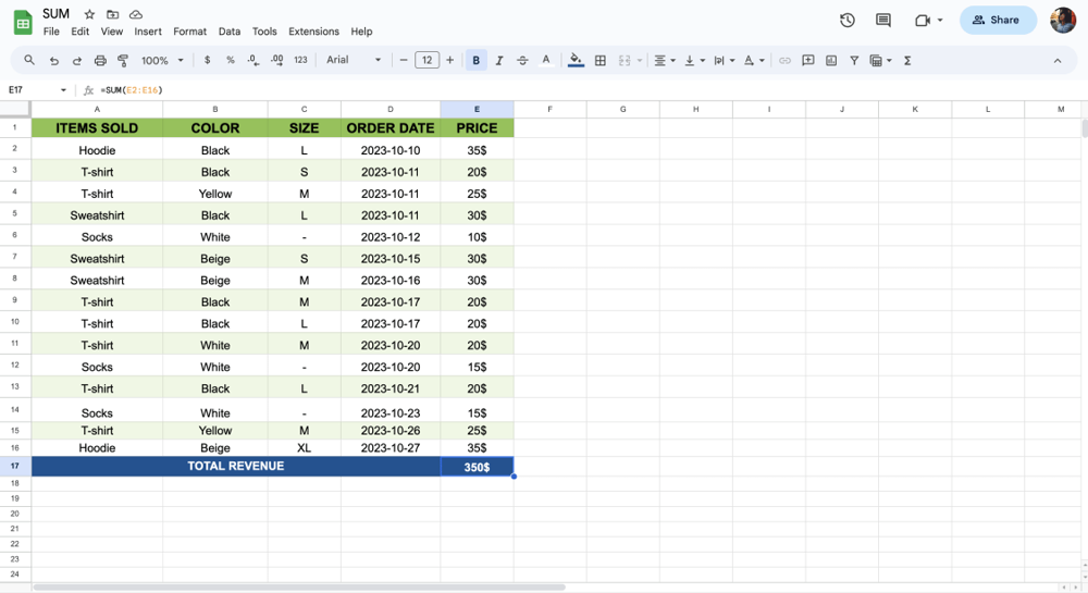 💡 If you have too much data that is hard to manage, you can easily sum up them via the SUM function.