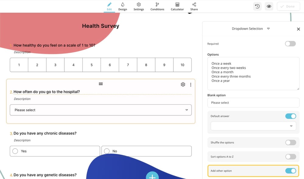 In general, people avoid solving long and obscure surveys. Patients want to understand the questions clearly when sharing their views and ideas. If you keep the health survey questions clear and short, you can increase the number of respondents and get more effective results. To make your questions clear, you can add descriptions under question titles.