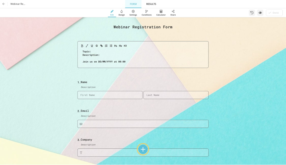 If you want to create a webinar sign-up form for free, forms.app is the way to go. With forms.app, you can create a webinar sign-up form in just a few minutes, and it's completely free! You can also use our templates to edit your form later on.