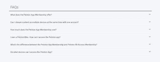 Below the form, Peloton answers Frequently Asked Questions that prospects might have. This gives them more understanding of what they’re signing up for.