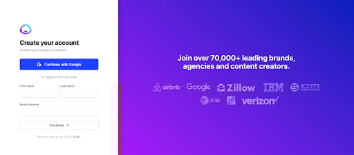Jasper.ai is an AI content creation tool with a full suite of features including art generation, chatbot and plagiarism checker. Their signup form has the most necessary fields for a typical signup process: first name, last name, and email address. Any other information Jasper will need from a user will be collected later on as the customer gets more familiar with the app and how it works.