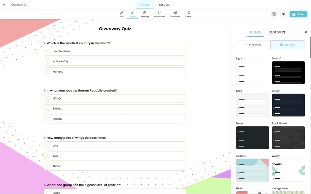 You can also change the theme selection, an essential point for quizzes, from the many different themes that form.app offers you.