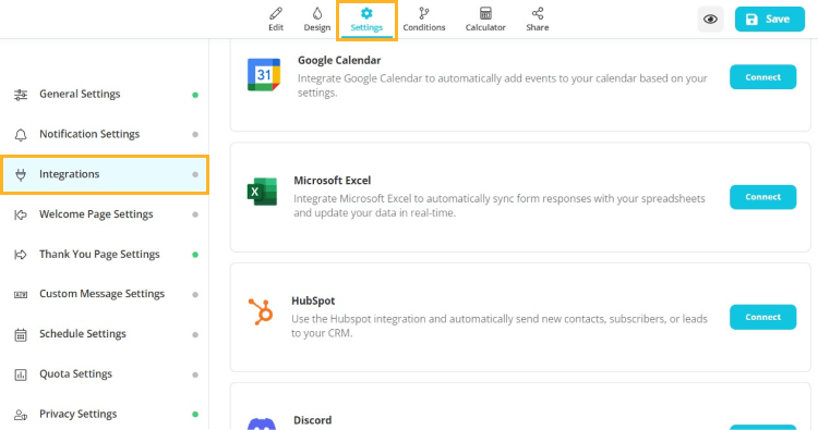 As you are well-aware, forms.app offers perfect solutions for sales teams, like conditional logic, professional-looking designs, a scoring system based on answers, and more. By using forms.app, you can improve customer experience with forms and collect data more effectively. Now, let’s see how we can enable and set up this integration on forms.app.