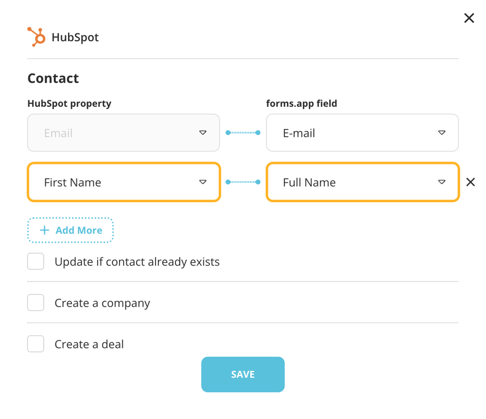 5 - Pair up the fields in your form with HubSpot properties: