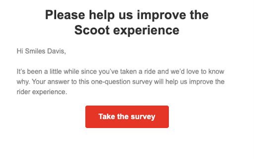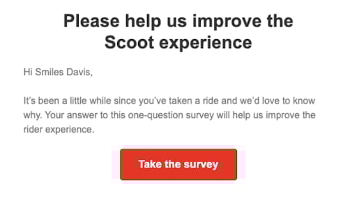 - add a strong CTA. You can do it before the survey link button or actually turn the button into a CTA (see example below);