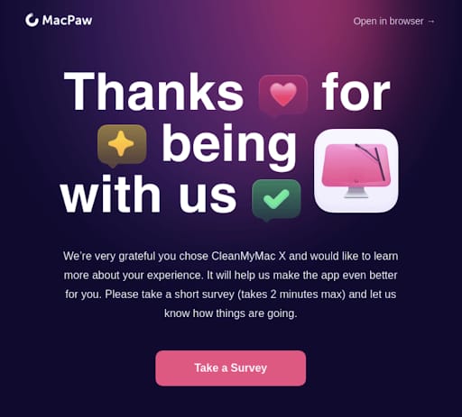 You don’t need to write a lengthy explanation to convince customers of the validity of your reasoning. In fact, one or two short sentences will be just enough. You don’t want to overload the survey invitation email with unnecessary information anyway, right?
