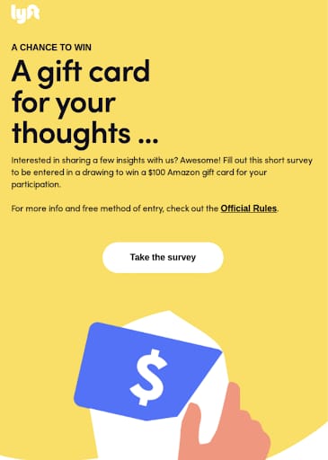 Pro-tip: can’t offer any tangible incentives to your recipients? It’s not a big deal! Instead, you can give them a clear explanation of how the survey will improve your product/service in an actionable way. Will you use survey results to work out a better product delivery method? Create more durable packaging? Provide more efficient customer support? Let your objective be known to customers. In addition, offering incentives, don’t forget to follow DMARC reports and ensure that your account is safe from email security threats and that your message would be delivered to the email lead’s inboxes.
