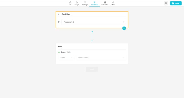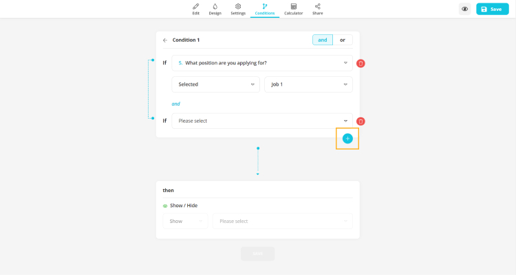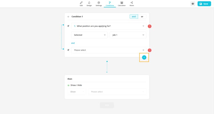 4 - Optionally, you can add another “if” to your conditions and choose to show & hide questions at the same time: