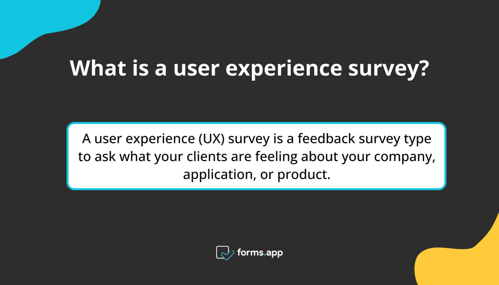 A user experience (UX) survey is a feedback survey type where one can collect insight into their target audience’s customer experience. Basically, it is a way of asking what your clients are feeling about your company, application, or product.