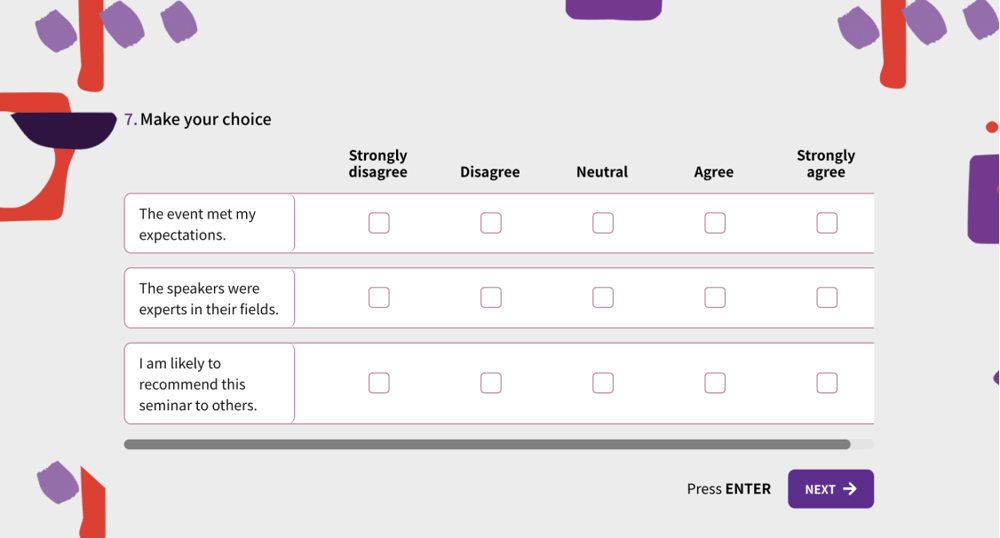 - Step 3: Enter your question and the options you want to present. You can also add additional rows and columns to the matrix if needed.