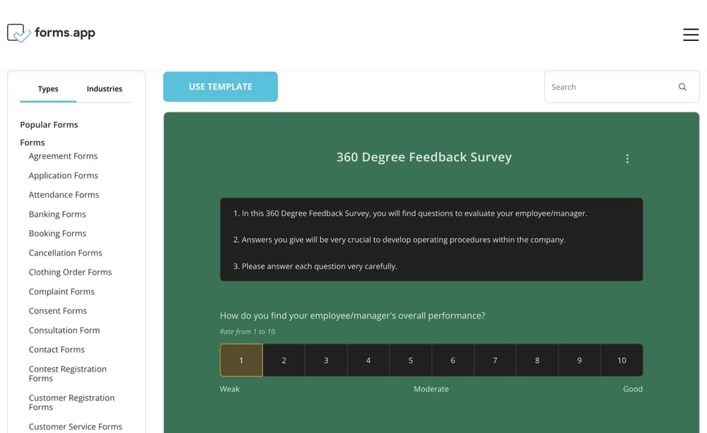 forms.app is a powerful form creature that enables you to create your own form from scratch and also offers free templates for use. Get started with free feedback form templates today and improve employee experience today!