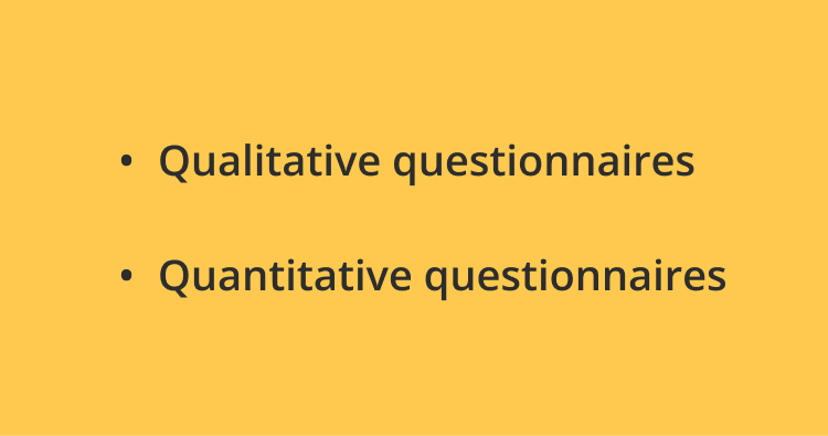 These types of questionnaires are used to collect qualitative data which is information that can be observed and recorded. It’s used to approximate and characterize. An example of qualitative data would be someone giving you feedback about your product. They may mention things about the quality, satisfaction, feeling, etc. it helps you categorize but you can’t attach a number to the feedback.