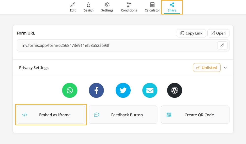 1- Head over to the Share page and find the Embed as Iframe option:
