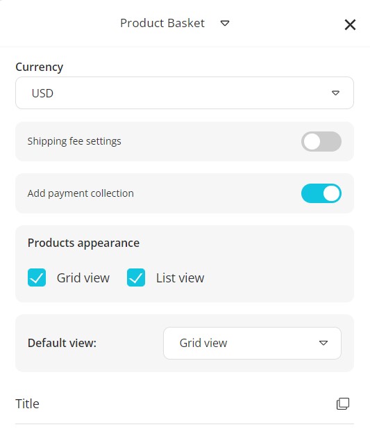 Through the field settings of your Product Basket, you can make adjustments like changing the currency, adding fixed shipment fees, changing the layout of the Product Basket, inserting a Payment field to your order form, and you can do many other useful things for an excellent e-Shopping experience.