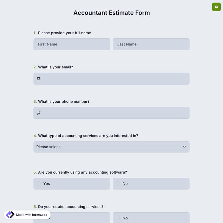 View this accountant estimate form and click on "use template" after making sure this is what you are looking for.
