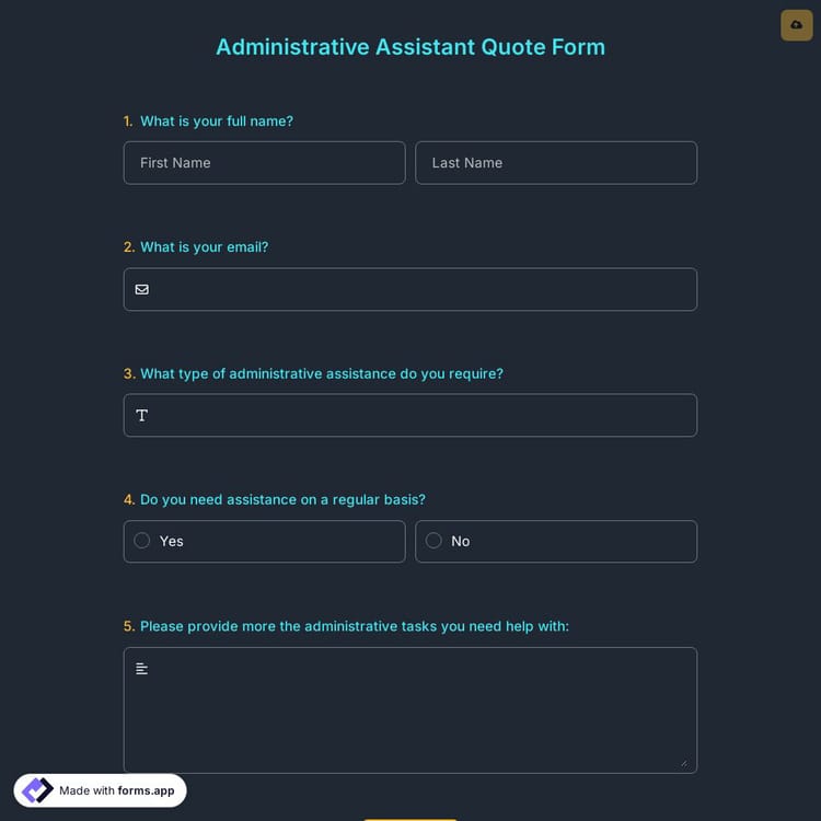 From graphic designers to translators, any freelancer or business can use quotation forms to give price estimates or standard prices to their customers. By offering a service quote form, businesses can gather details, such as contact information and job requests. Plus, online quotes are effective and efficient for both buyers and sellers, as they automate the process and make it easier overall.
