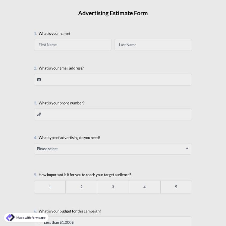 Add or remove questions through forms.app's drag & drop interface and match your brand style.