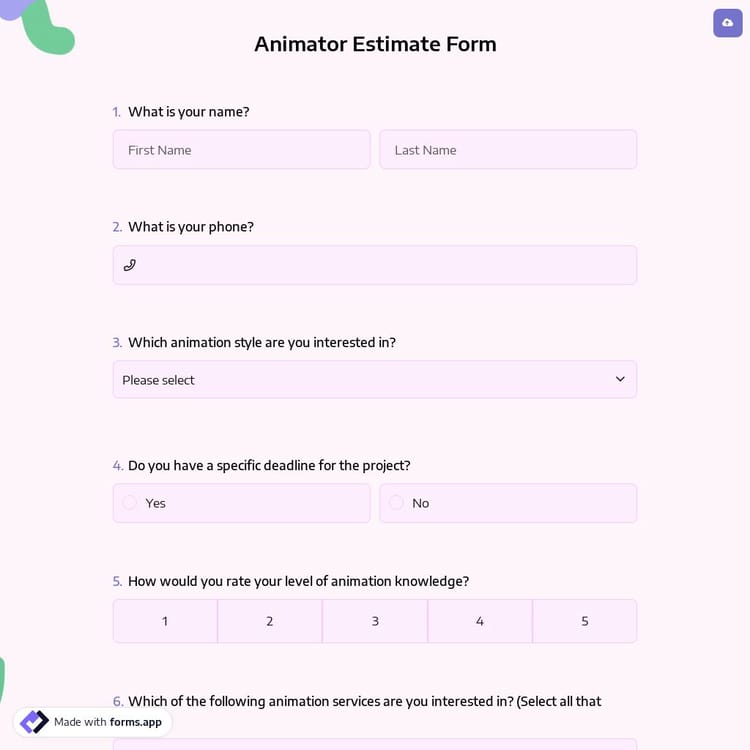 View this animator estimate form and click on "use template" after making sure this is what you are looking for.